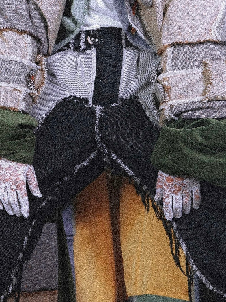 表のレイヤーと、裏のレイヤーが反転したようなデザインのパンツ