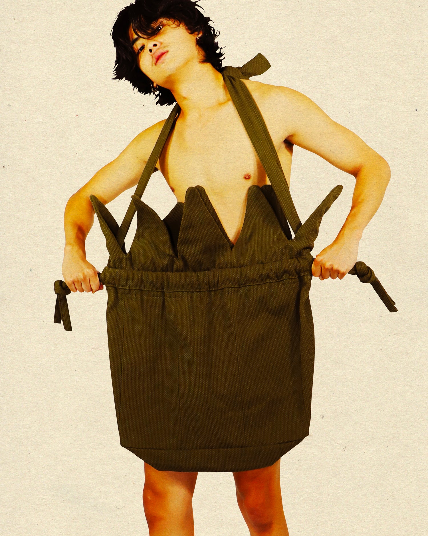使用していく中で何度も絞り柔軟性が生まれていく様子に、青々とした草が枯れていく様を投影した