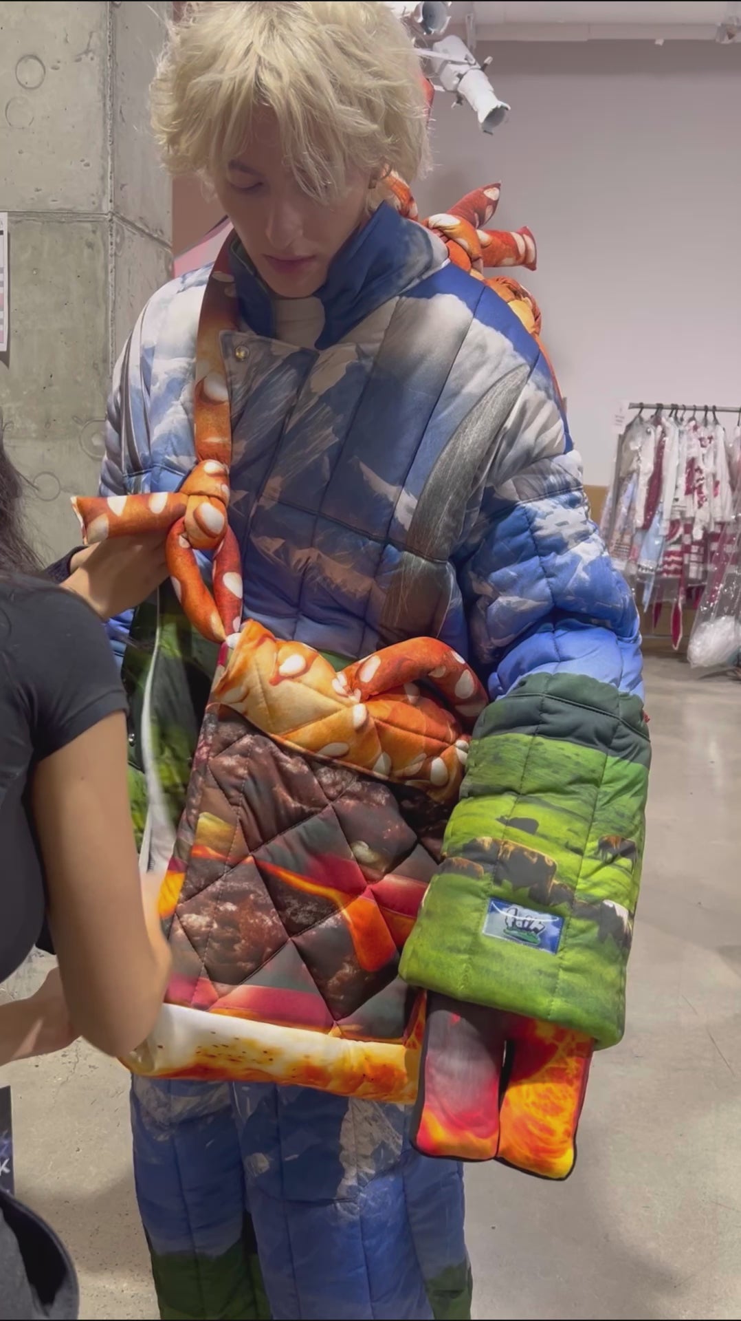 滑らかな肌触りのキルティングに、チーズバーガーのフルグラフィックプリントがされたバッグ